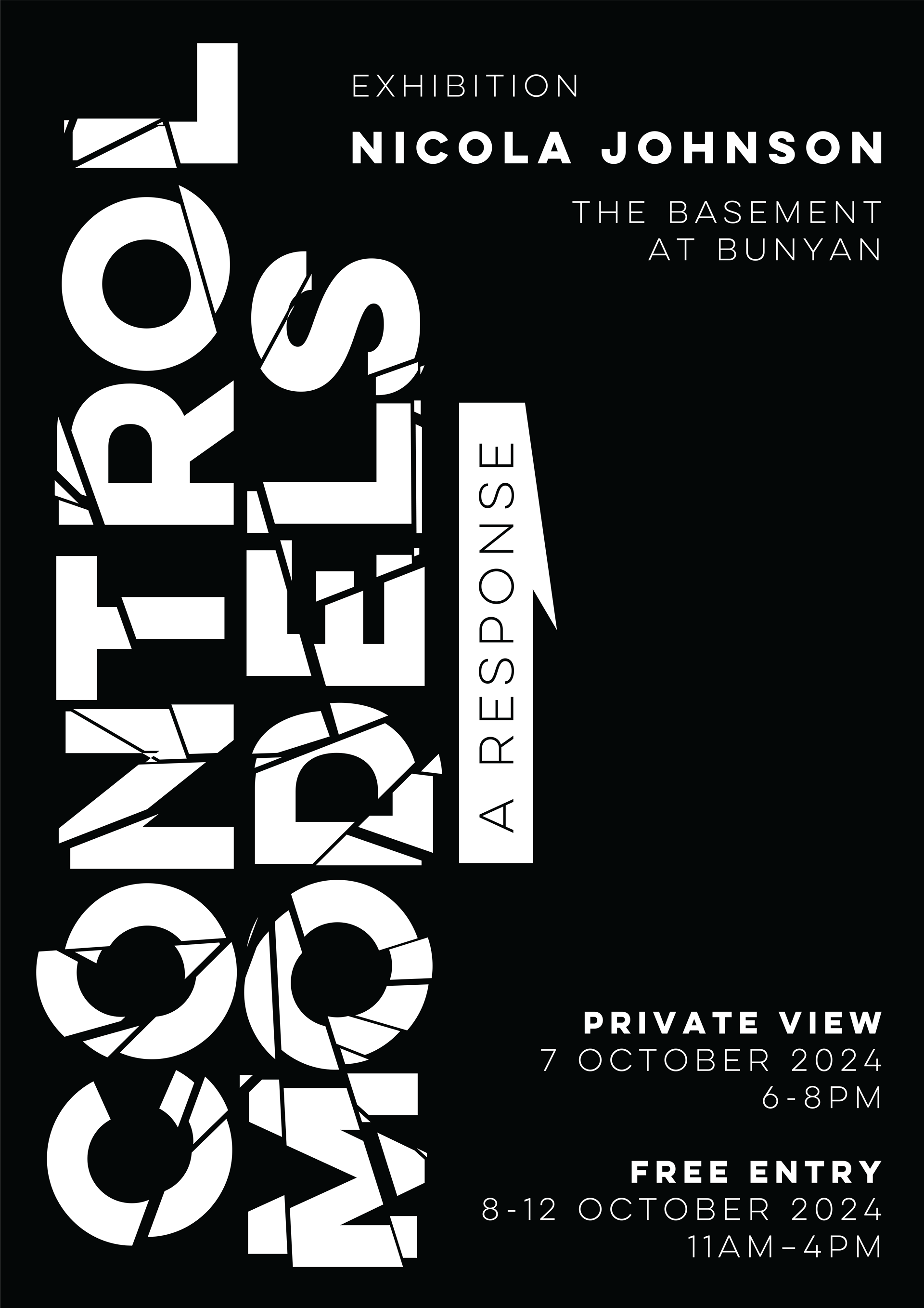 Two exhibition posters, three years apart, for fine artist Nicola Johnson's show (and its subsequent response, Control Models 2). Nicola's research and practice explores artistic creation, social media and control.