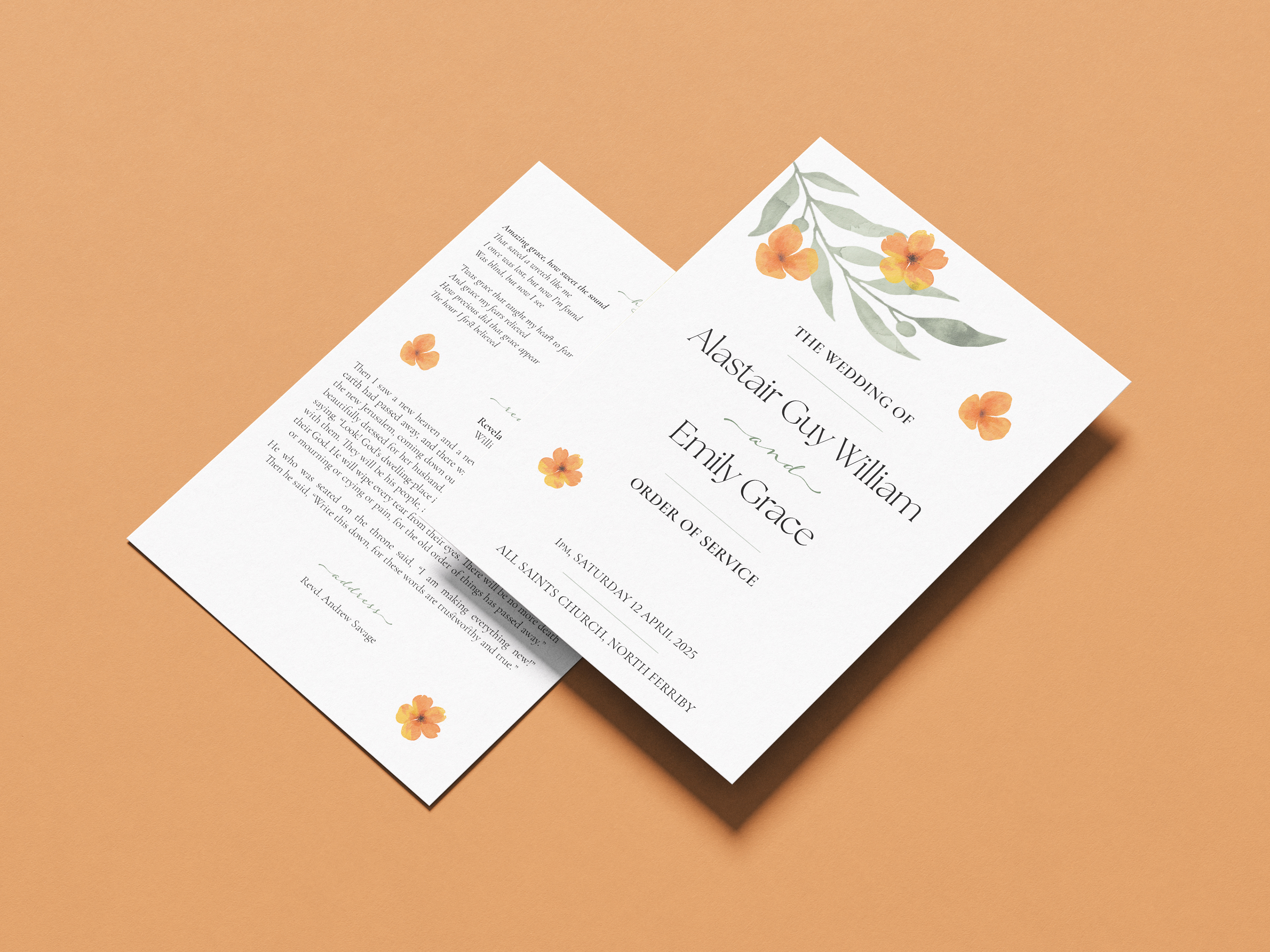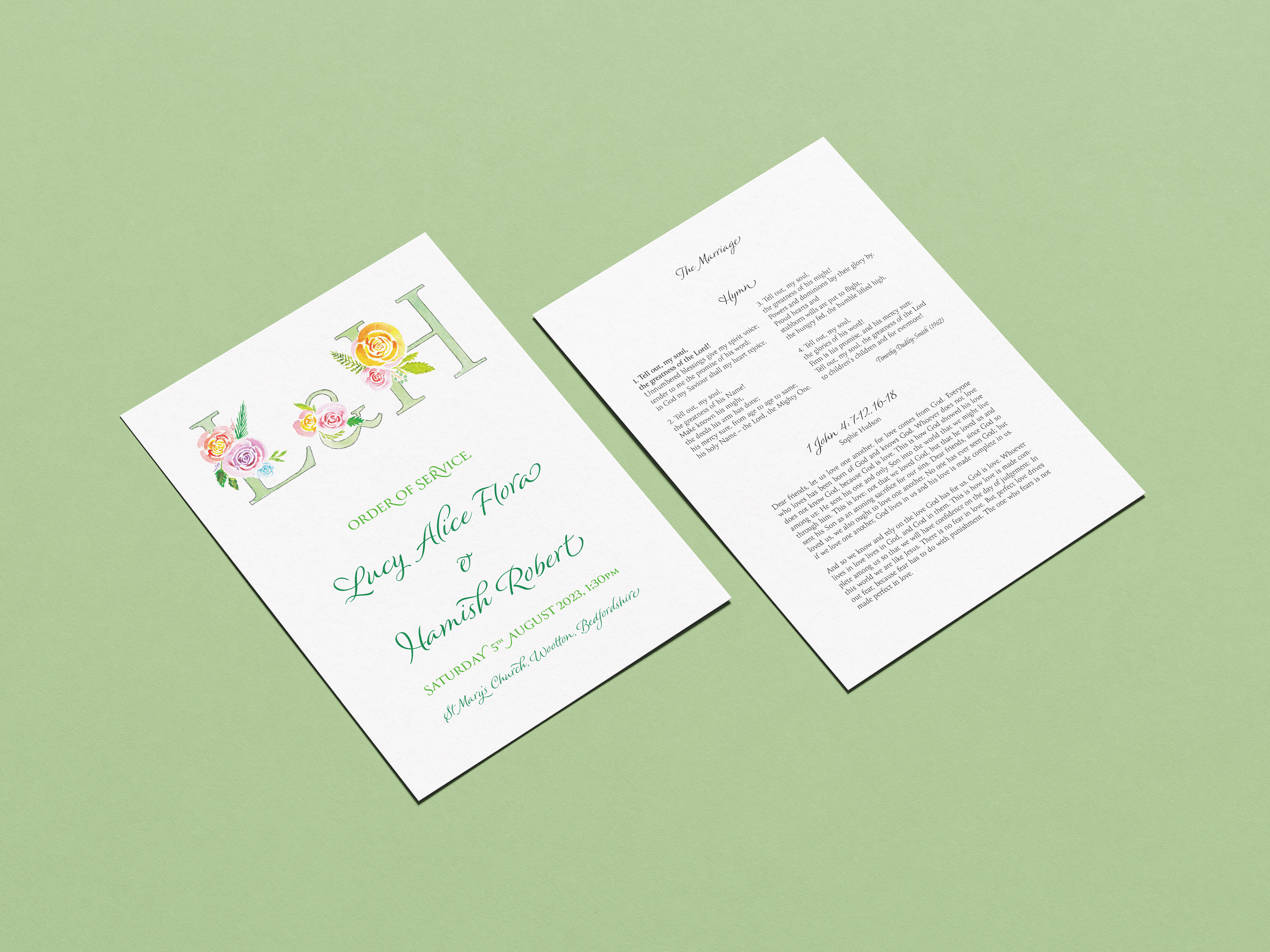 Elegant invitations and orders of service. One design incorporates the client's own watercolour painting and another needed bespoke icon design. I pay particular attention to typography during these projects, choosing versatile, complimentary fonts.